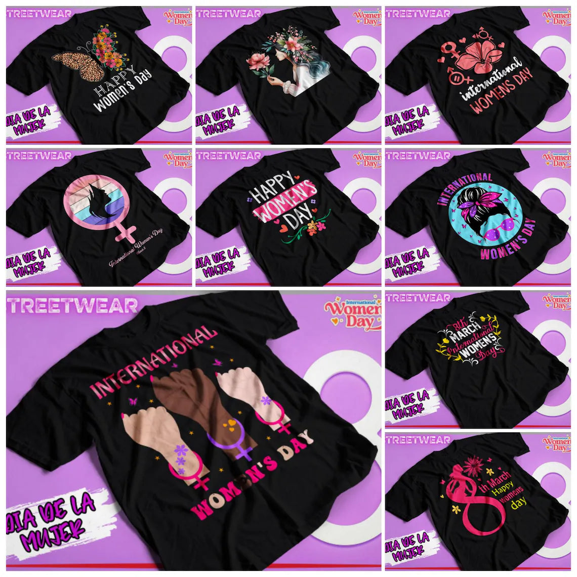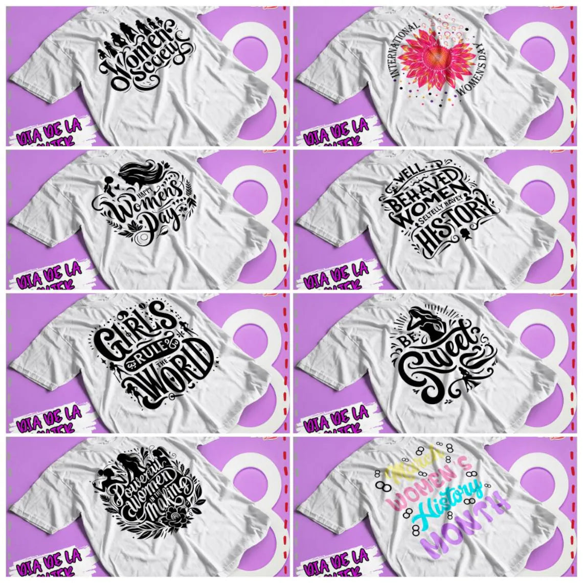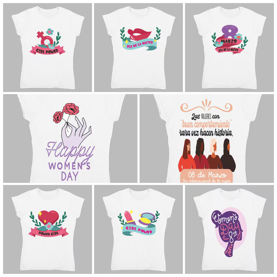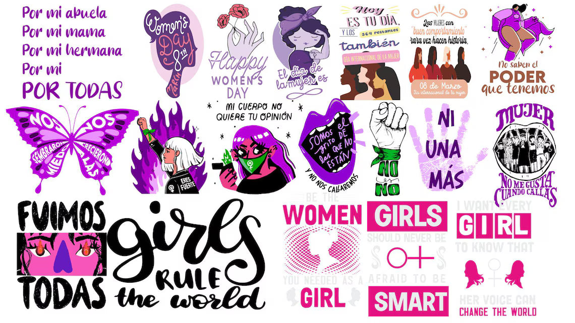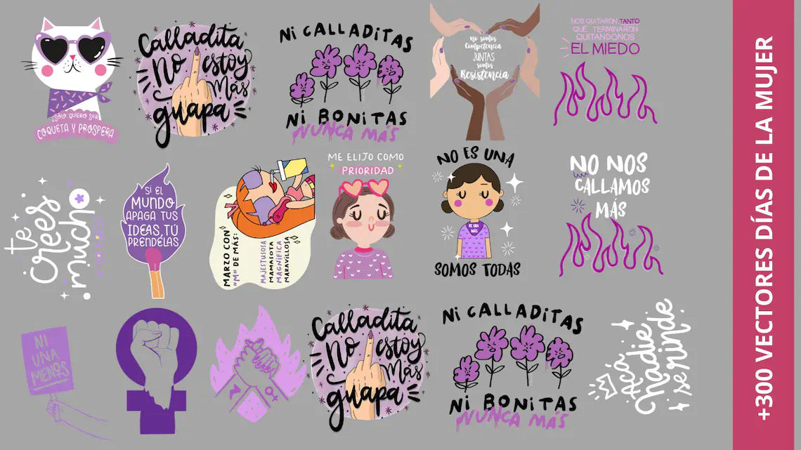 Pack digital día de la mujer, incluye más de 600 vectores en diferentes formatos (png, corel, ESP, PDF, entre otros).